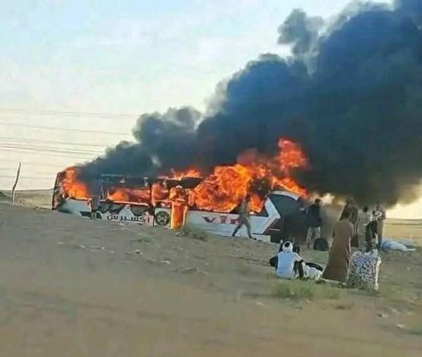 إحتراق باص نقل جماعي على الخط الدولي صافر مأرب بعد العصر مرفقاً صورة للحداث الرهيب.